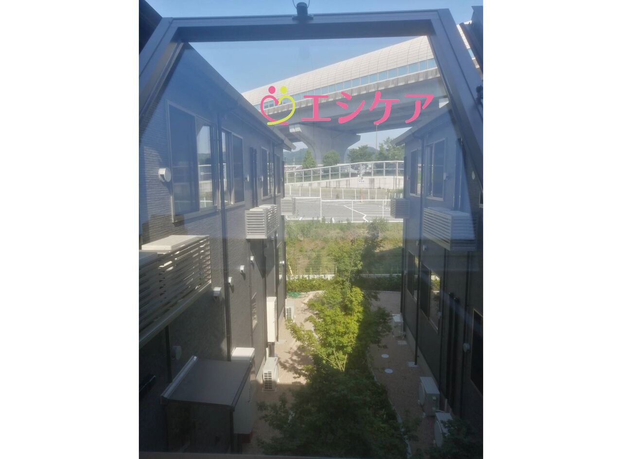 2棟が2階の渡り廊下で繋がっていて、渡り廊下から外が眺められます。