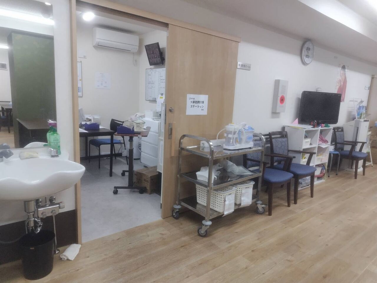 館内に入ると食堂となりますが、入居者さんがチラホラとテレビを見ながら寛いでいらっしゃいました。ご自宅にいるかのようにリラックス環境なんでしょうね