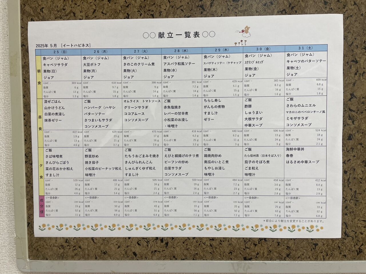 ちなみに先月のメニューはというと…